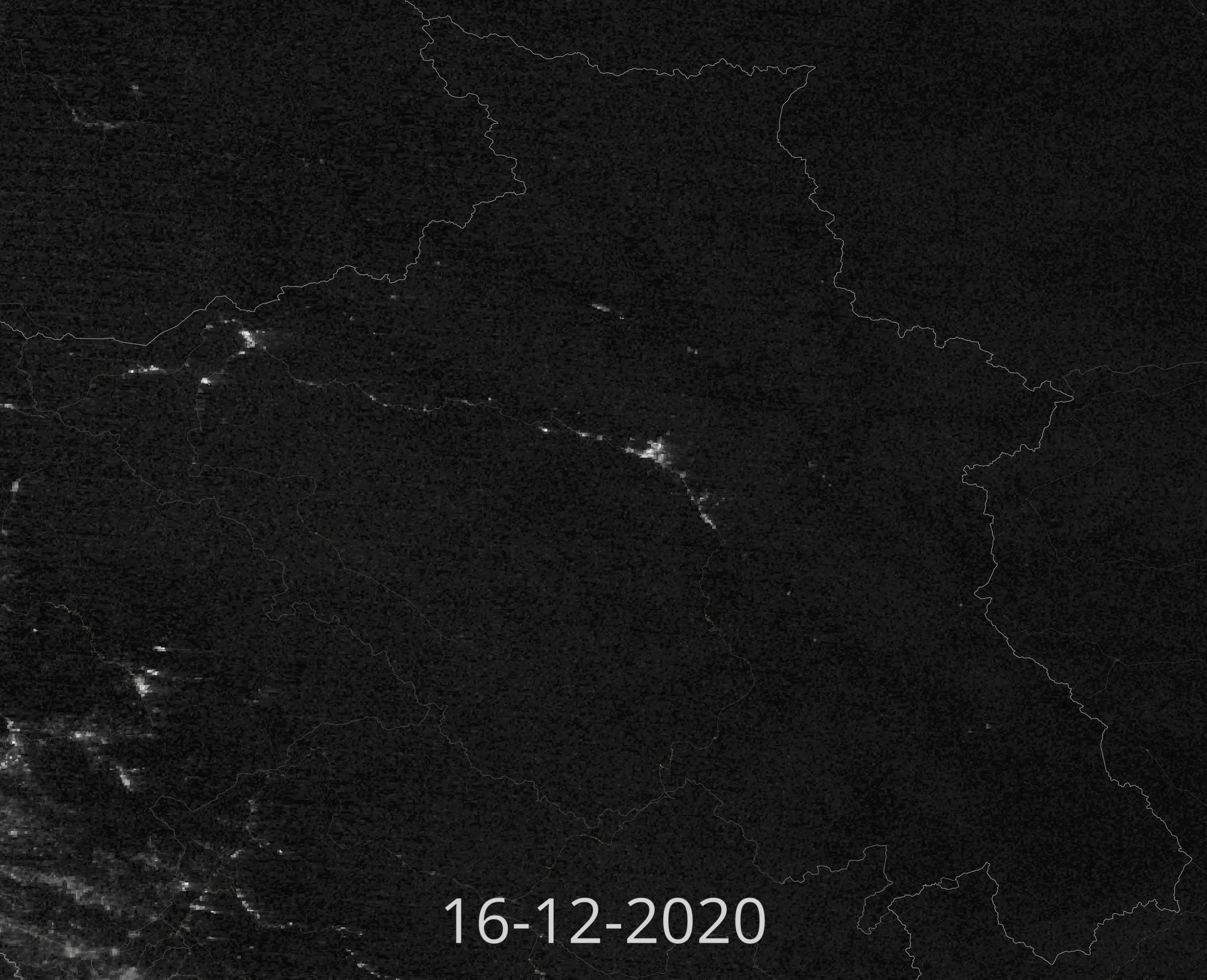 The two slides shows Ladakh as captured by () at night. The comparison of two gives an idea of change in lighting over a 4 year period. The two bright cities are Leh (centre) and Kargil (mid-left) . There are many Army camps and Road lighting which add to the changes .
